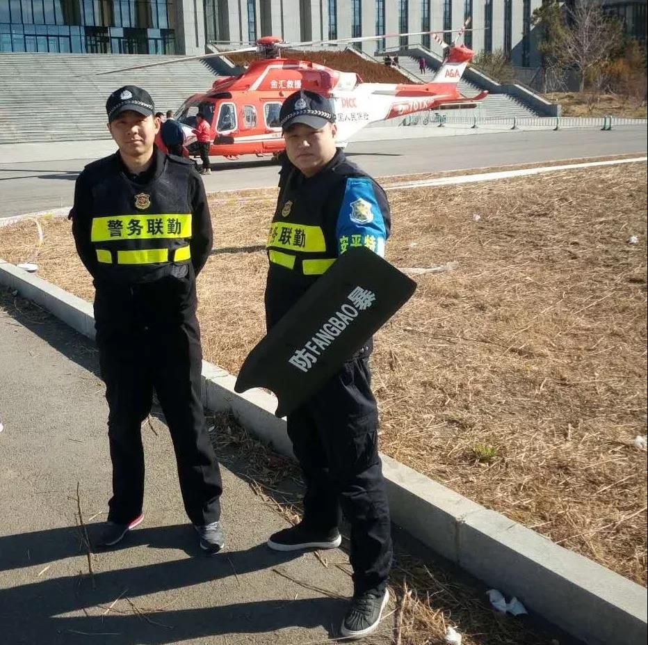 此次演练的一大特色就是空中医疗救援,在紧急情况发生时,特别是地面交通遭遇瘫痪,救援车拥堵的情况下,能够打破空间和地域限制,极大缩短危重患者的救治时间,而安平保安在此次演练中的主要任务就是确保直升机、救护车和物资救援车辆等演练装备的绝对安全。