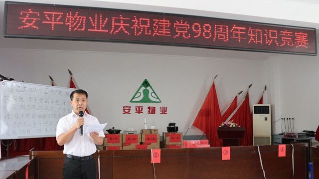 火红七月,流光溢彩。2019年7月12日下午,安平集团会议室内人头攒动,热闹非凡。“学习强国,阅读兴辽”安平物业杯庆祝中国共产党建党98周年知识竞赛在这里如期举行。集团领导,部分中层干部、一线员工近百人参与了活动。