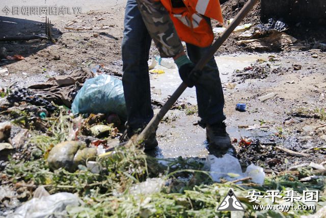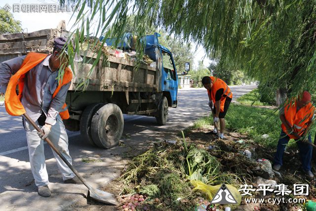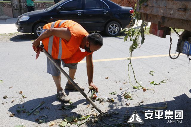 2019年7月26日,正在辽宁省朝阳市双塔区长宝营子乡长宝村作业的安平集团清洁工人,汗水已经将衣服浸湿,背后也有了一圈圈的汗渍,都打的汗珠顺着脸颊流淌下来,他们辛勤劳作的身影在眼光下愈发耀眼。