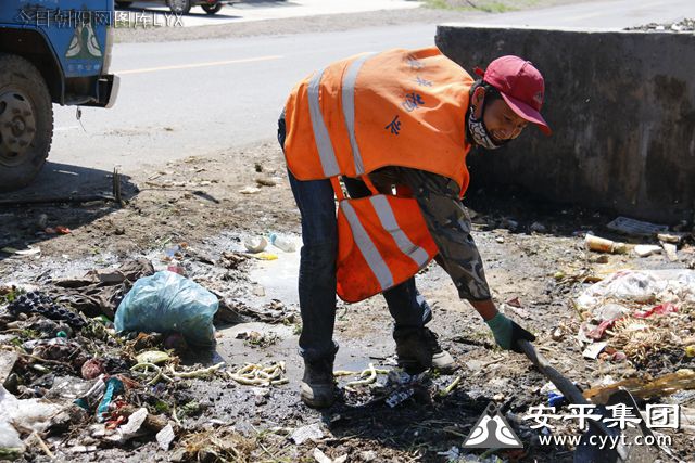 7月31日,由于前一天的降雨,垃圾堆里泥泞不堪,臭气扑鼻,清洁工人不怕脏、不怕累,脚上、身上、手上都沾满了呜呜,即使这样他们还是满脸笑容,像太阳一样闪闪发光。