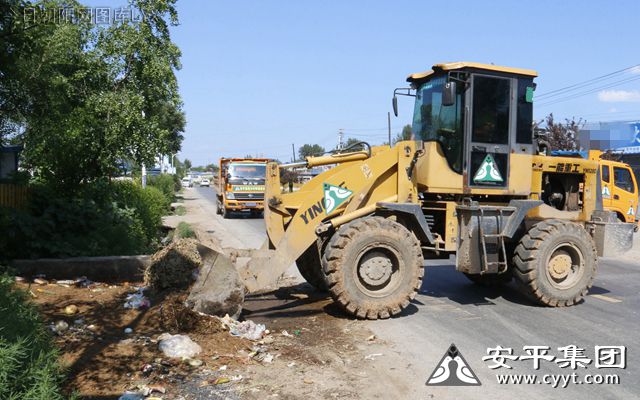 7月31日,安平集团负责清洁的铲车工人正在西大营子镇作业。