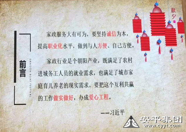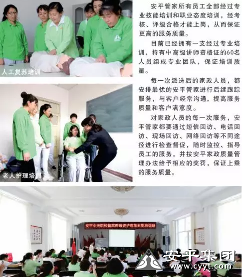 安平做家政20多年,不管拓展任何新业务,对家政一直都很重视,不断学习先进、高端的家政理念融合到公司。把事业做强做大,是安平一直追求的目标,家政36条的发布以及信用平台体系的建设,让我们看到了国家对家政事业的大力支持,看到了家政服务业的春天,接下来我们将积极响应国家政策、各级领导号召、促进家政服务质量进一步提高,基本实现专业化、网络化、规模化发展。借助集团旗下中天职业学校强大的专业技能培训支持,达到解决人员流动性大的后顾之忧,借助信用平台体系的建设,让我们能够大刀阔斧的发展家政事业。